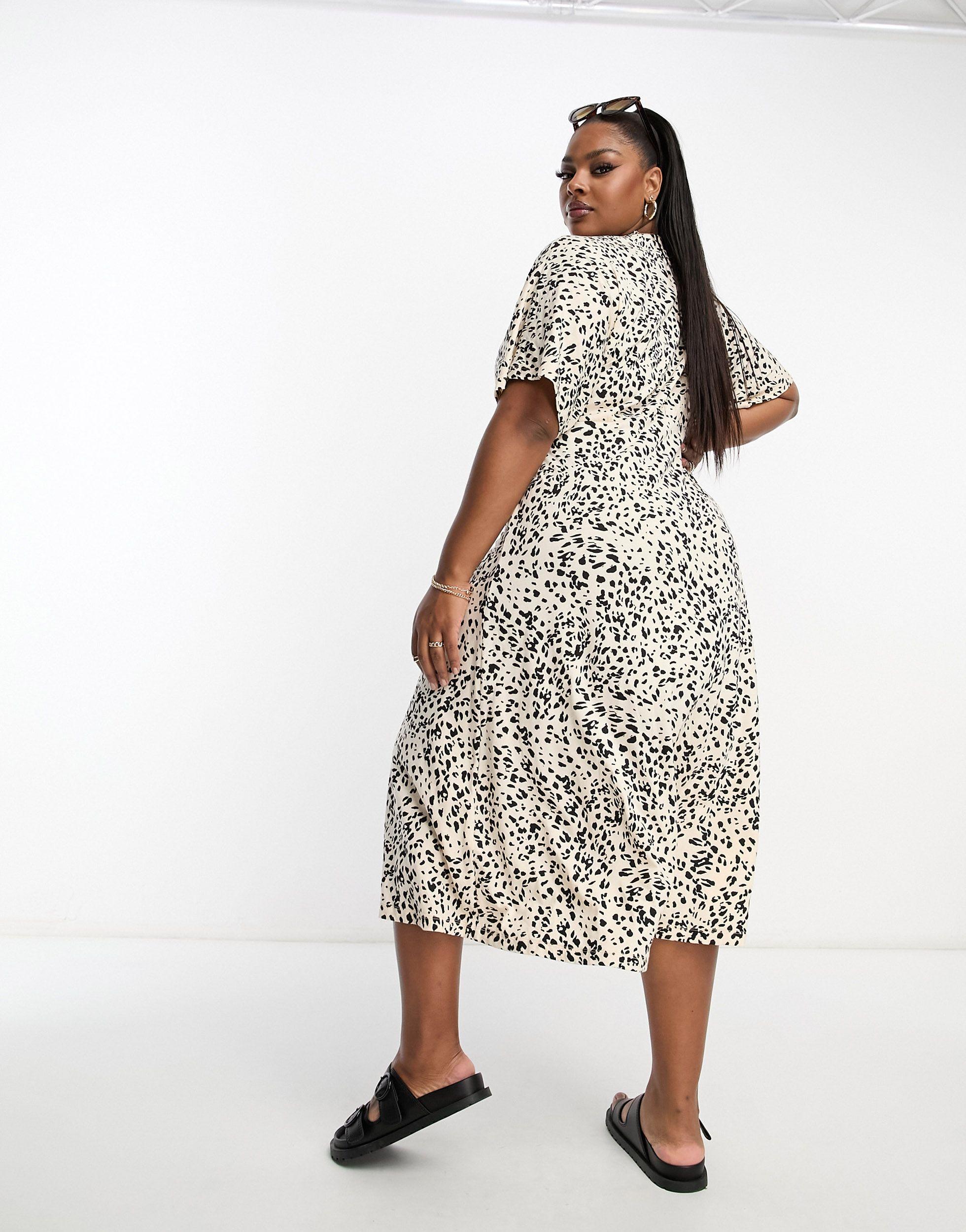Asos Asos Design Curve Flutter Sleeve Midi Tea Dress With Buttons In White Lyst Uk